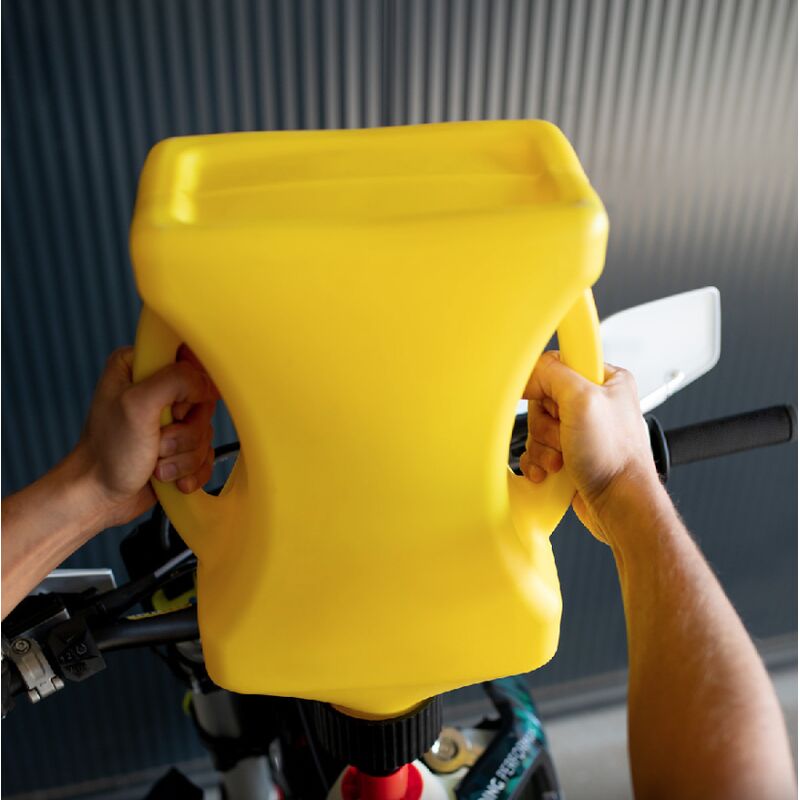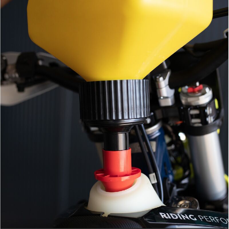 Kanister mit Schnelltankventil, stoppt automatisch, wenn der Tank voll ist, kein Adapter für KTM, GASGAS und Husqvarna notwendig. Kanister wird mit einem Schnelltankverschluss und einem Standardverschluss ausgeliefert.